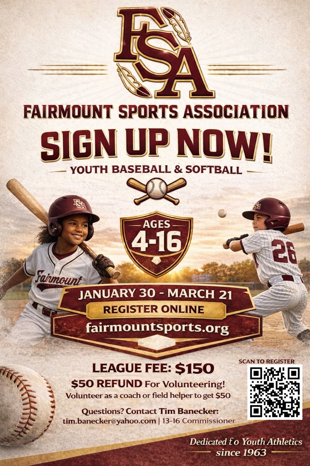 Fairmount Sports Association is an all-volunteer organization so your help and participation is necessary to help make each season a success at an affordable price for families!